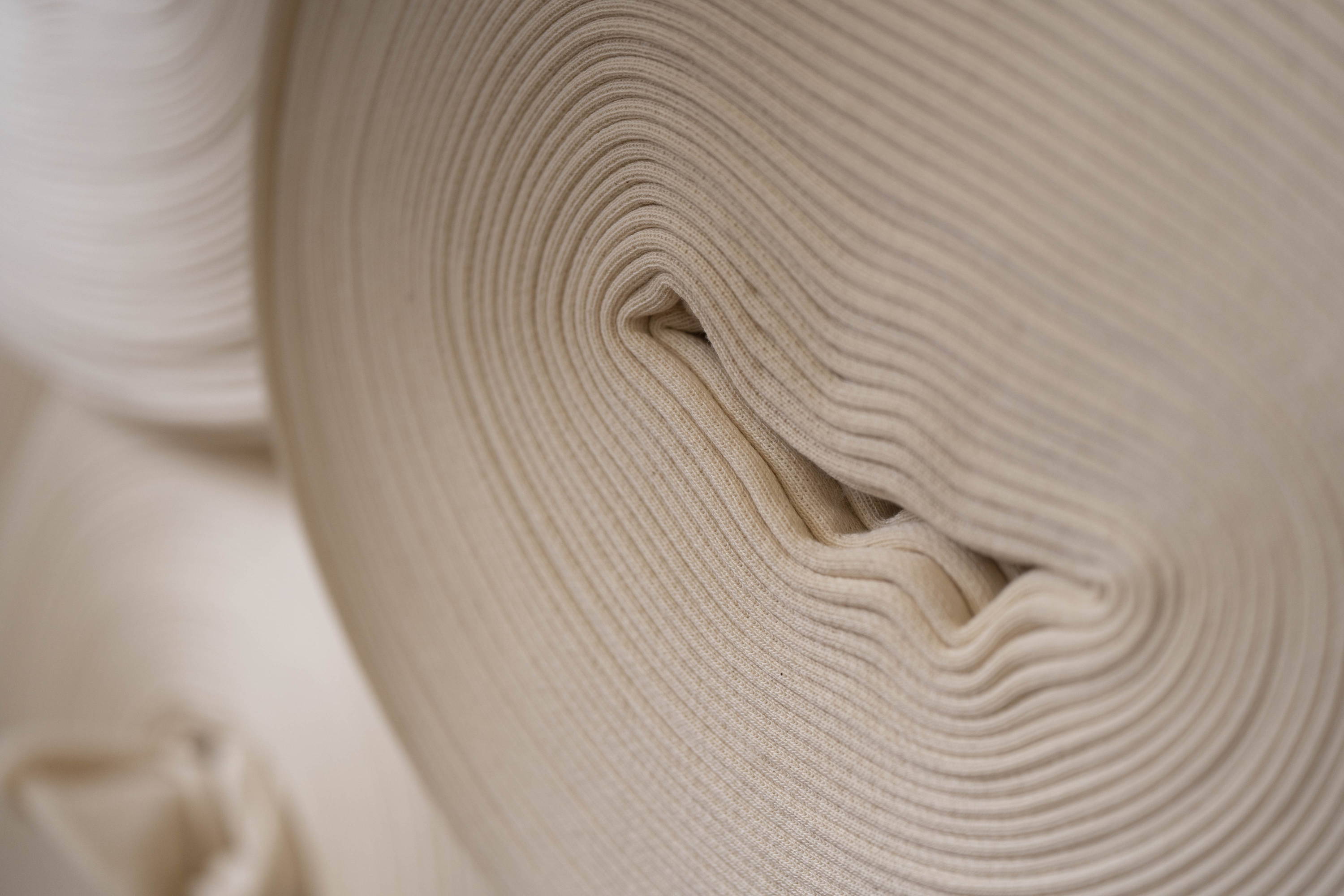 さらにLIFiLLがこだわっているのが「丸仕上げ」になります。通常は筒状に仕上がった生地をカットして開いて、ロールに巻いて反物として販売されるのですが、僕たちはロールに巻かず出来上がった筒状のまま管理し製品を作っていきます。生地を引っ張ったり巻き取ったりするストレスをかけない事で、ふっくら柔らかい仕上がりを最大限活かしたまま製品が出来上がります。