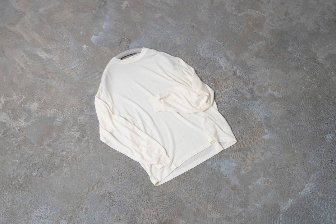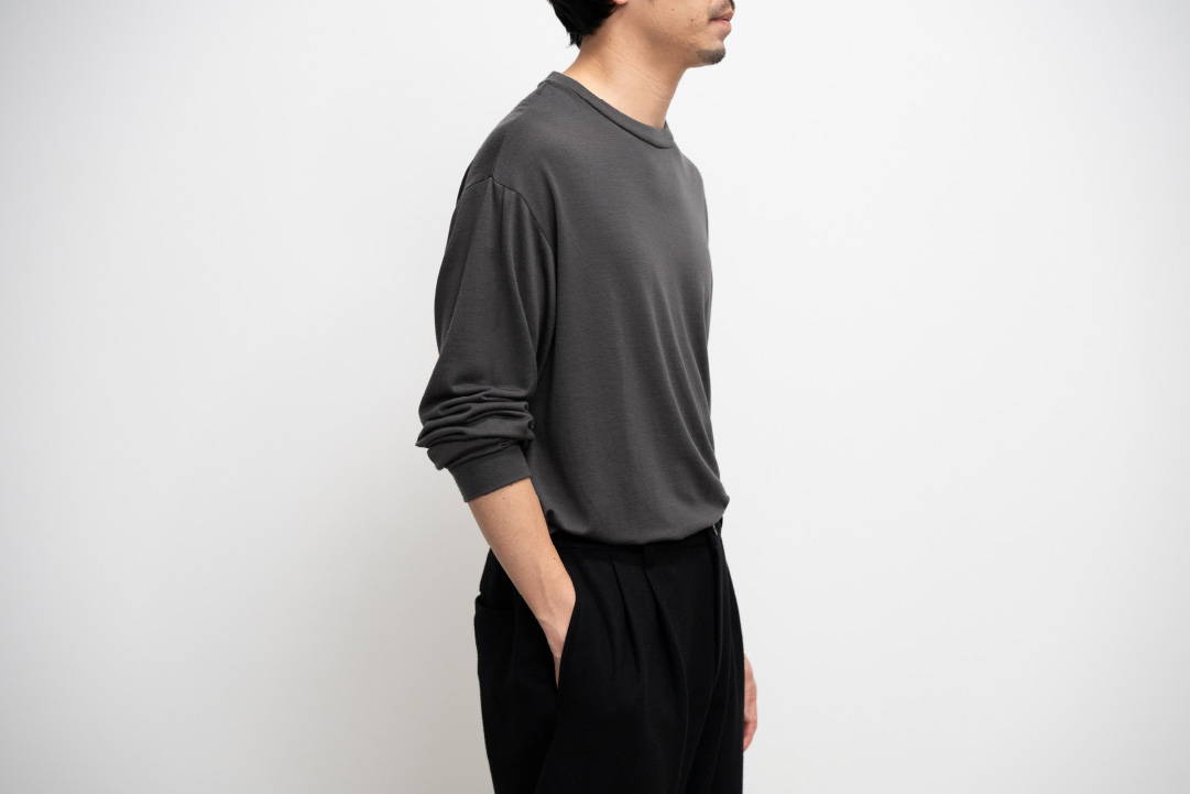 青山:そうですね。vol.1で紹介した「WOOLISH MILLED SMOOTH」もですが、とにかくSuper140'sの質感が良すぎて。この冬は、気がついたら全身メリノウールで過ごしている日が多かったです(笑)。今回のウール天竺は夏のほうが快適さを感じれるので、皆さまにも是非「日常に寄り添うメリノウール」を体感していただきたいです!