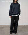 スウェット生地というと目の詰まったコシのあるものから、薄く柔らかいものまでありますが、LIFiLLが目指したのは程よく肉厚で、体の動きに沿う柔らかさを備えたもの。35番手の双糸で表は天竺編み、裏糸をループ状に編み込み、少し浮かせたタオル地のような生地に仕上げました。裏毛のループ部分にボリュームを出すことで空気を含み、ふっくら軽やか。スーピマコットンのカシミヤのようななめらかさにより、生地にほんのりした光沢感ととろみを与えてくれています。スウェットではなかなか見られることのない、上質でクリーンな生地感を楽しんでいただけます。