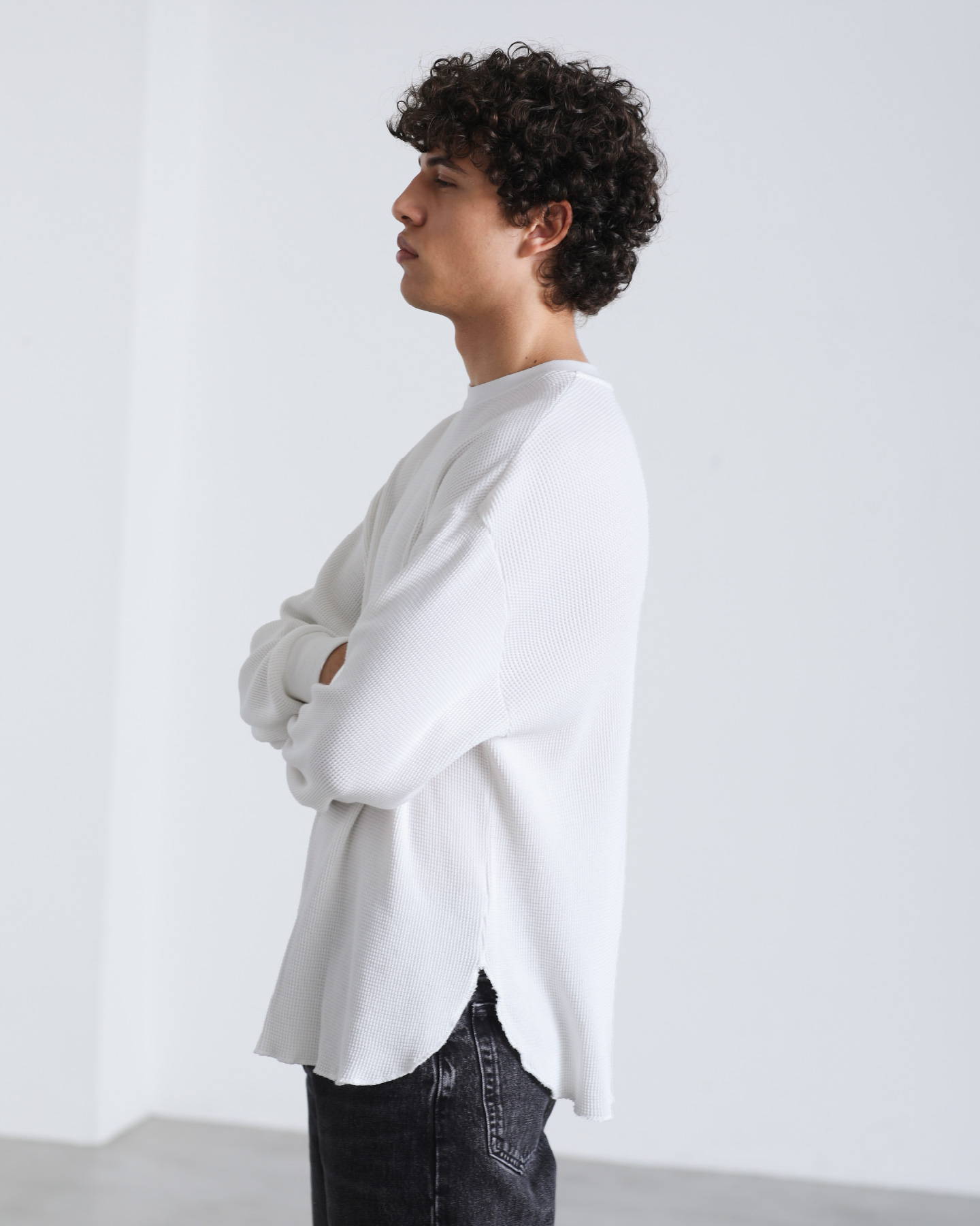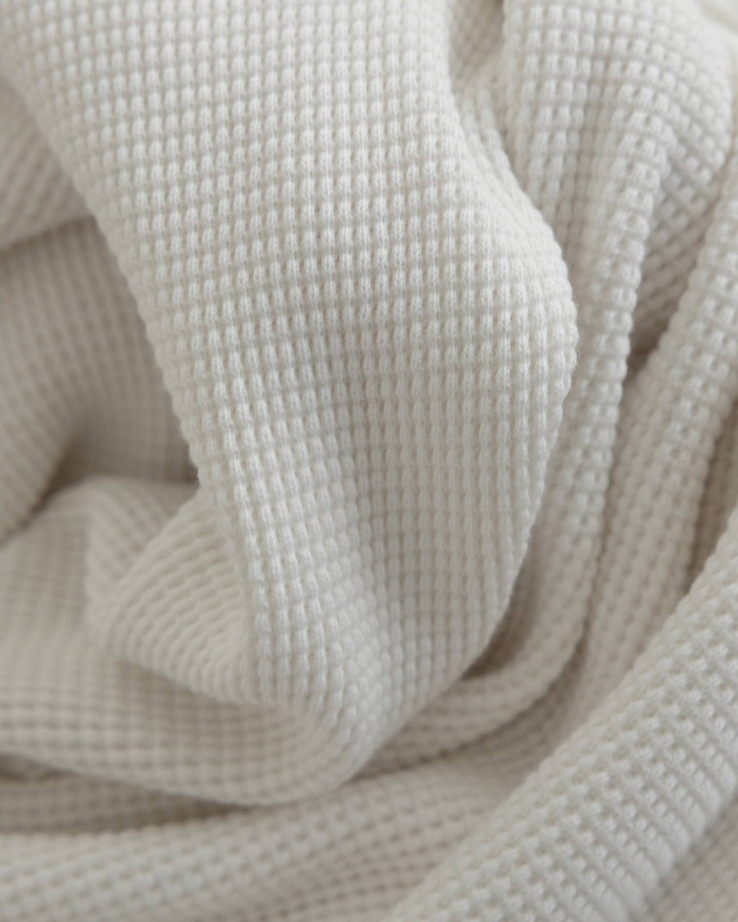 35/1を引き揃えで編むことで目を立たせ、LIFiLLらしい柔らかな着心地に仕上げた「COTTONY®WAFFLE」。コットンの王様とも呼ばれる最高峰の綿、スーピマコットンを使用しています。スーピマコットンは毛羽が少なく、上質でなめらかな風合いが特徴の原料です。