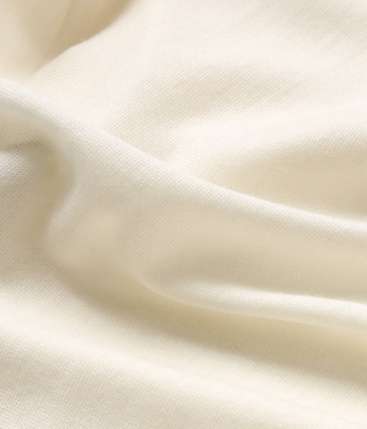 最初はスムース(表と裏帳面を編む組織のこと)で作ったのですが、生地に厚みが出てしまい、断念。工場さんとも相談して色々試した結果、今の生地ができあがったんです。糸もSUPER140'Sがぴったりでした。これ以上糸が細くなると生地が薄くなりすぎてしまい、1枚で着るには心もとない感じになってしまうので。