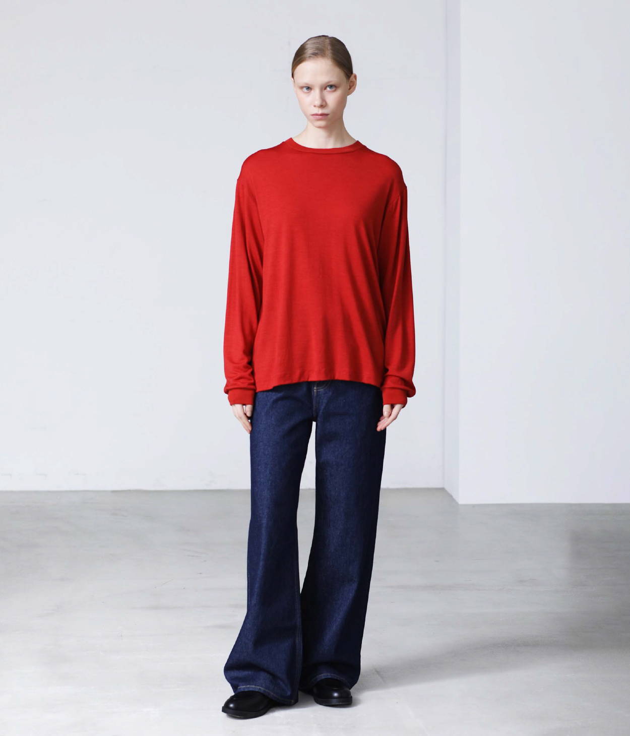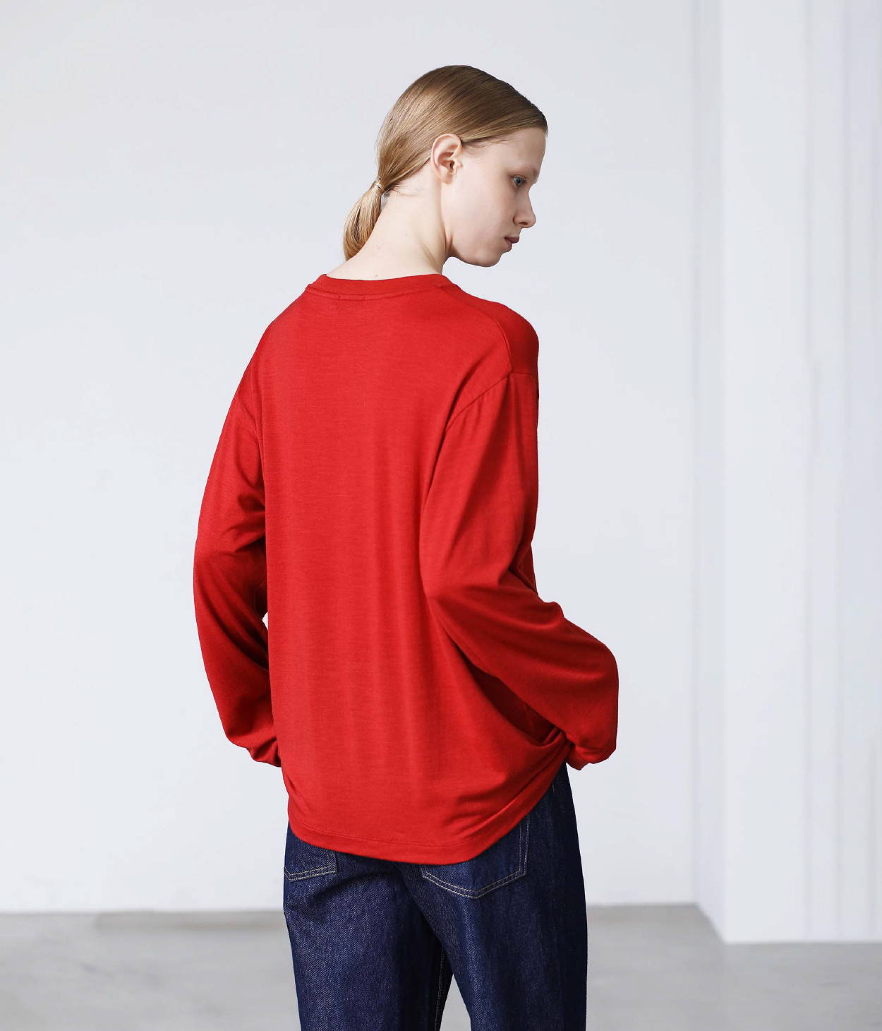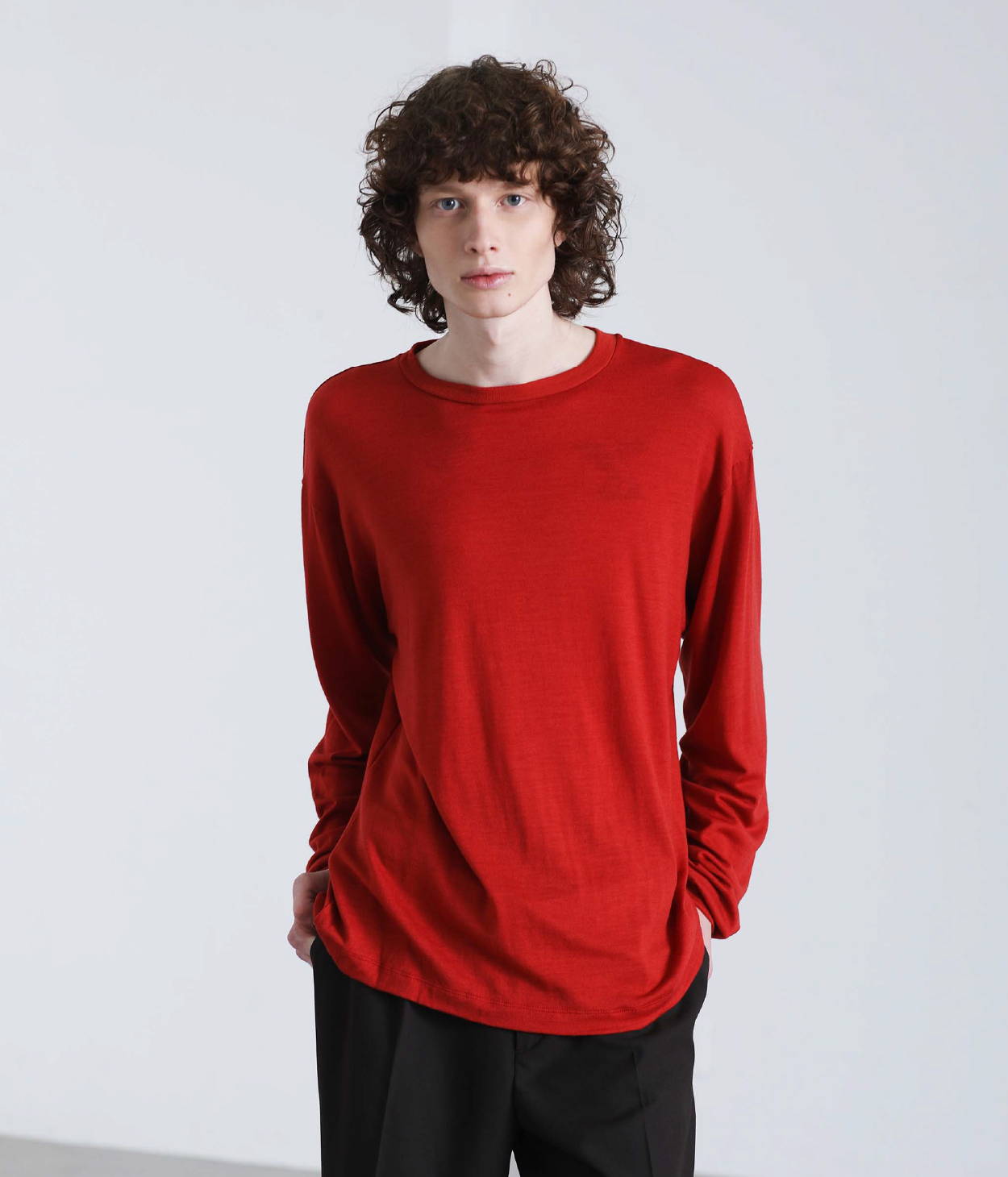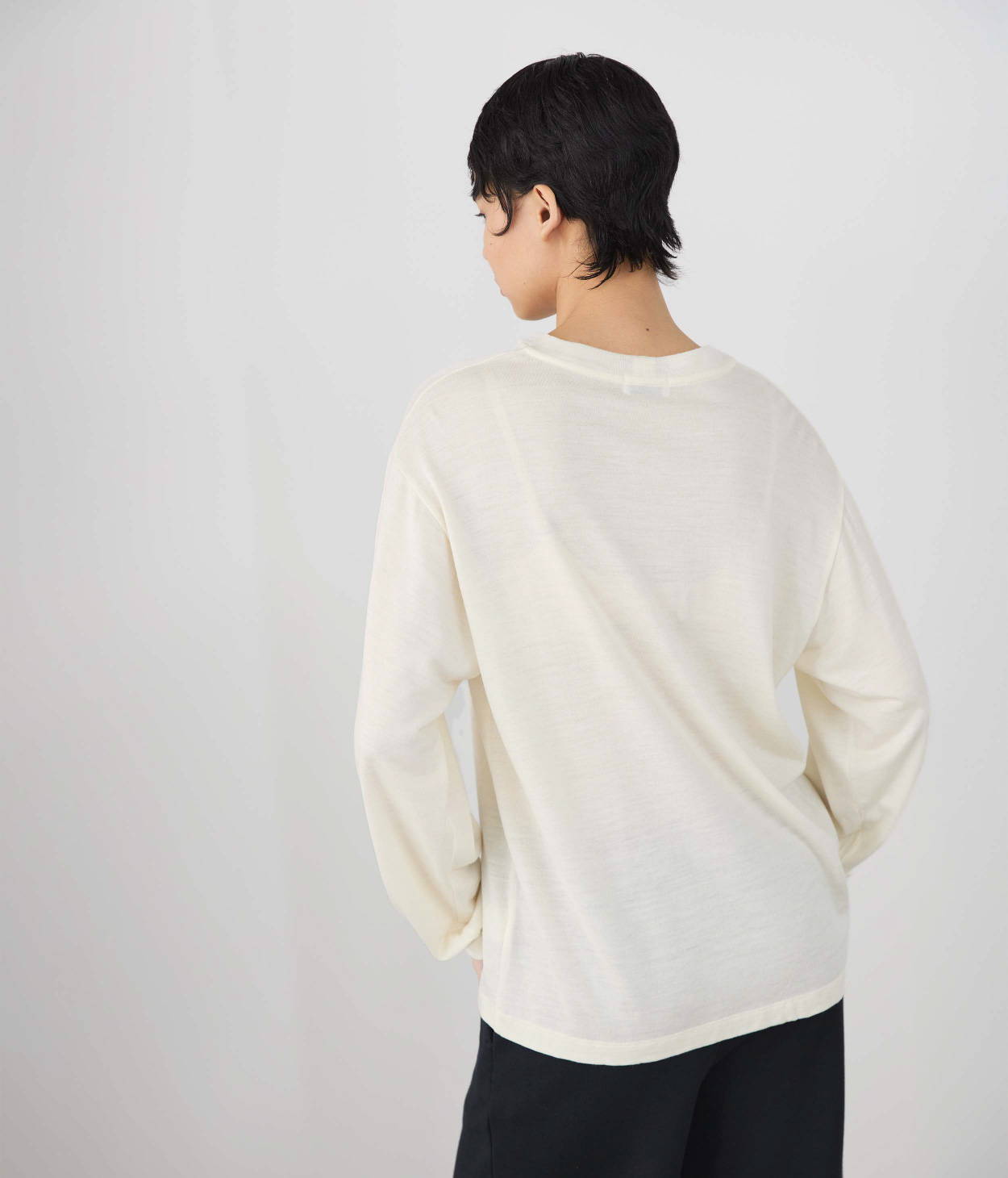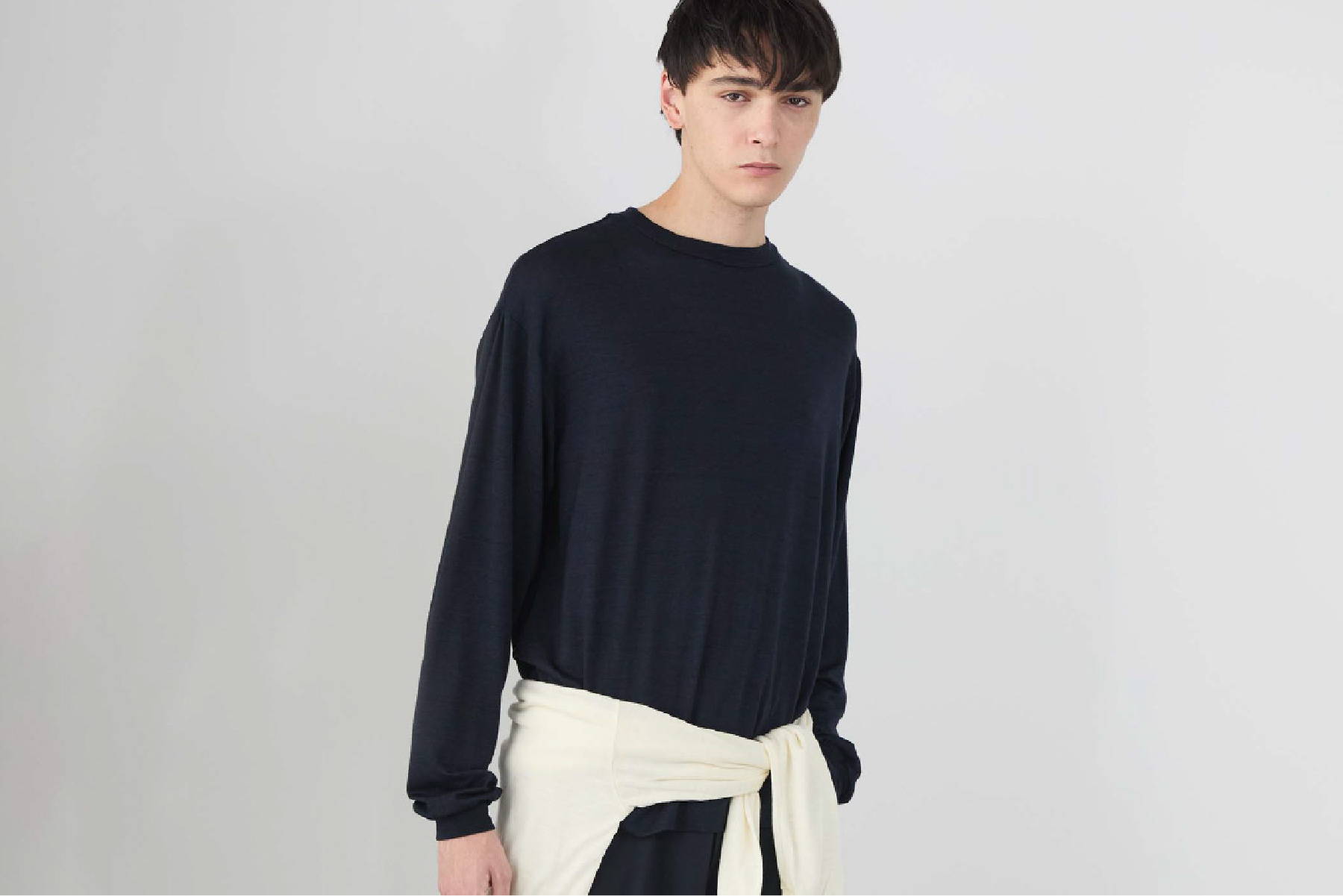 ウールの商品って結構厚みのあるものが多かった気がしていて。個人的には薄手でさらっと着られるものが欲しかったんです。1枚はもちろん、インナー的な使い方ができる、柔らかくて落ち感を楽しめるカットソーを作りたいなと。