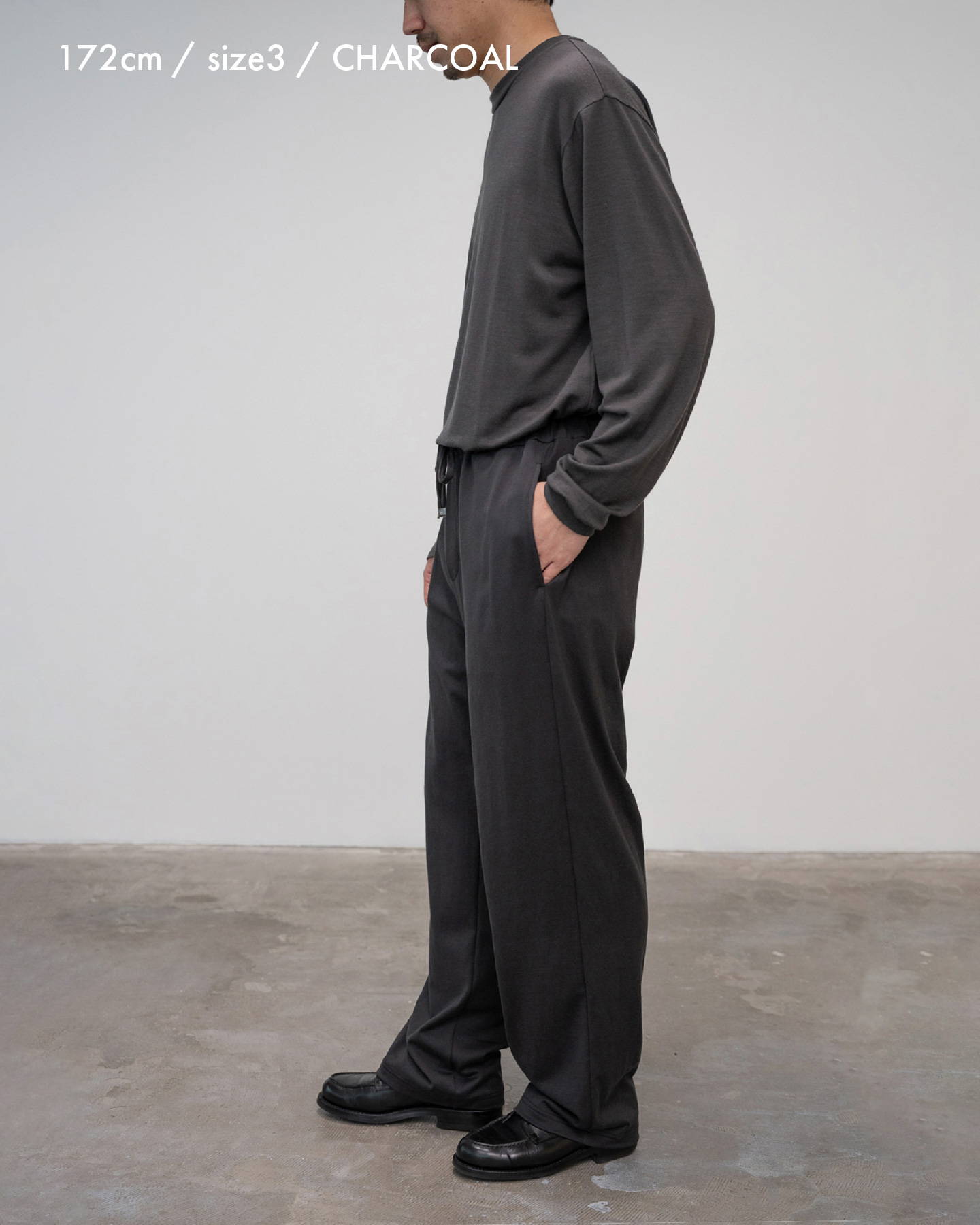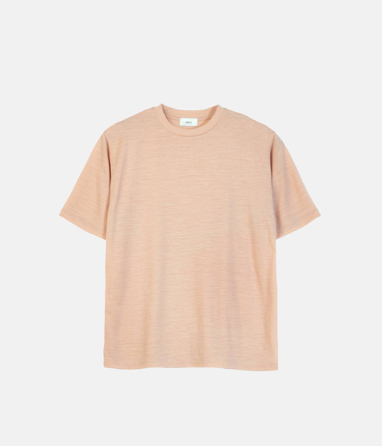 ウールのTシャツって結構スポーティーな商品が多い気がするのですが、この艶やウールならではの表情を活かすなら、ちょっと上品な方向に持っていく方が良いなと考えて。素材の良さを邪魔しないよう、なるべくシンプルなディテールにしています。