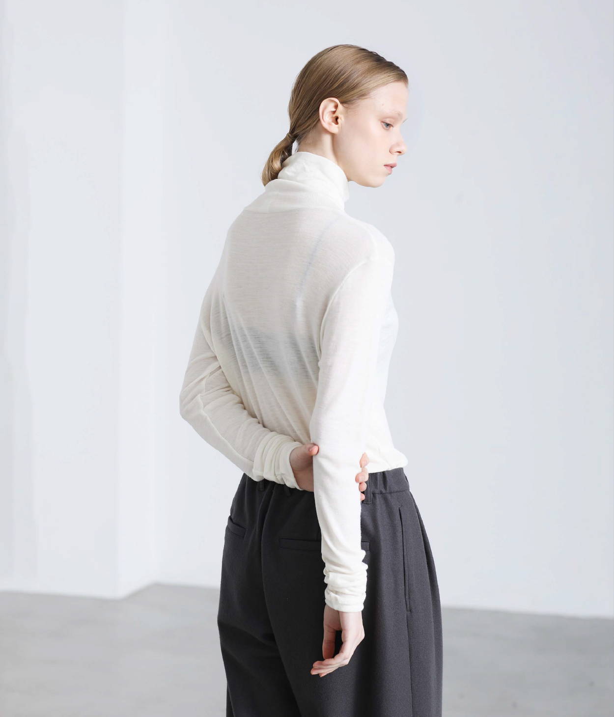ウールの商品って結構厚みのあるものが多かった気がしていて。個人的には薄手でさらっと着られるものが欲しかったんです。1枚はもちろん、インナー的な使い方ができる、柔らかくて落ち感を楽しめるカットソーを作りたいなと。