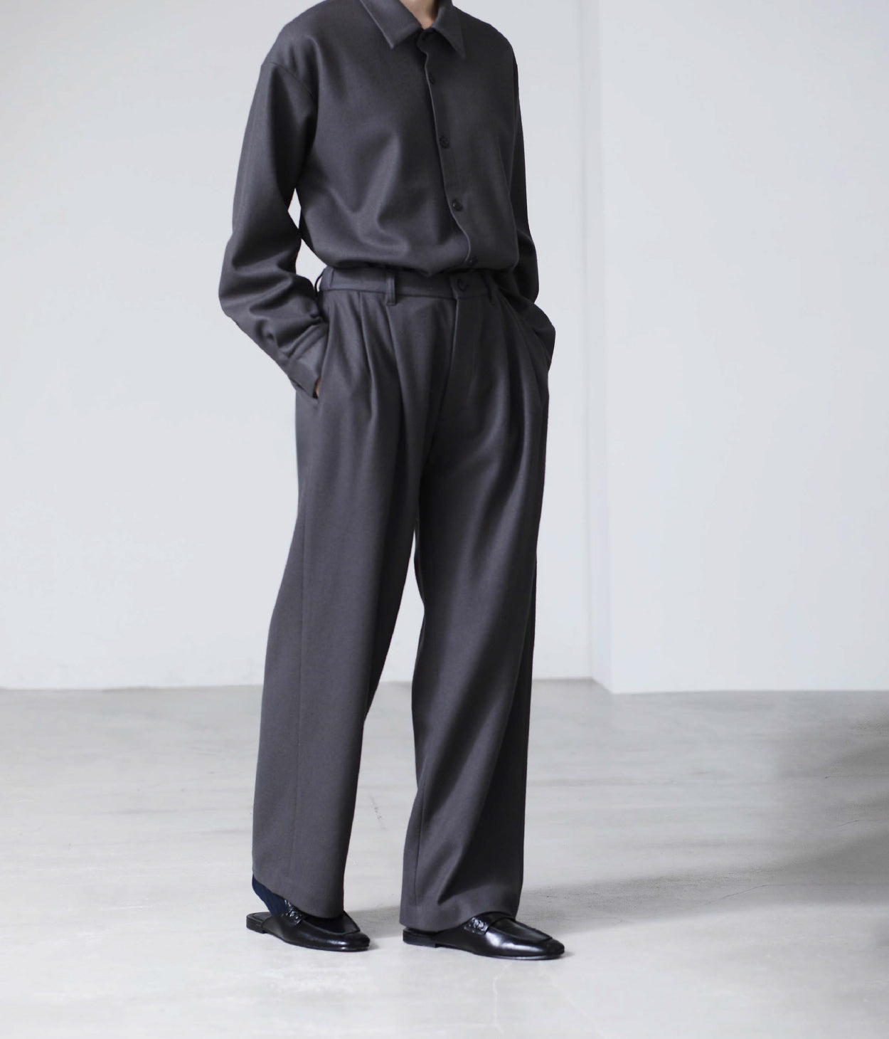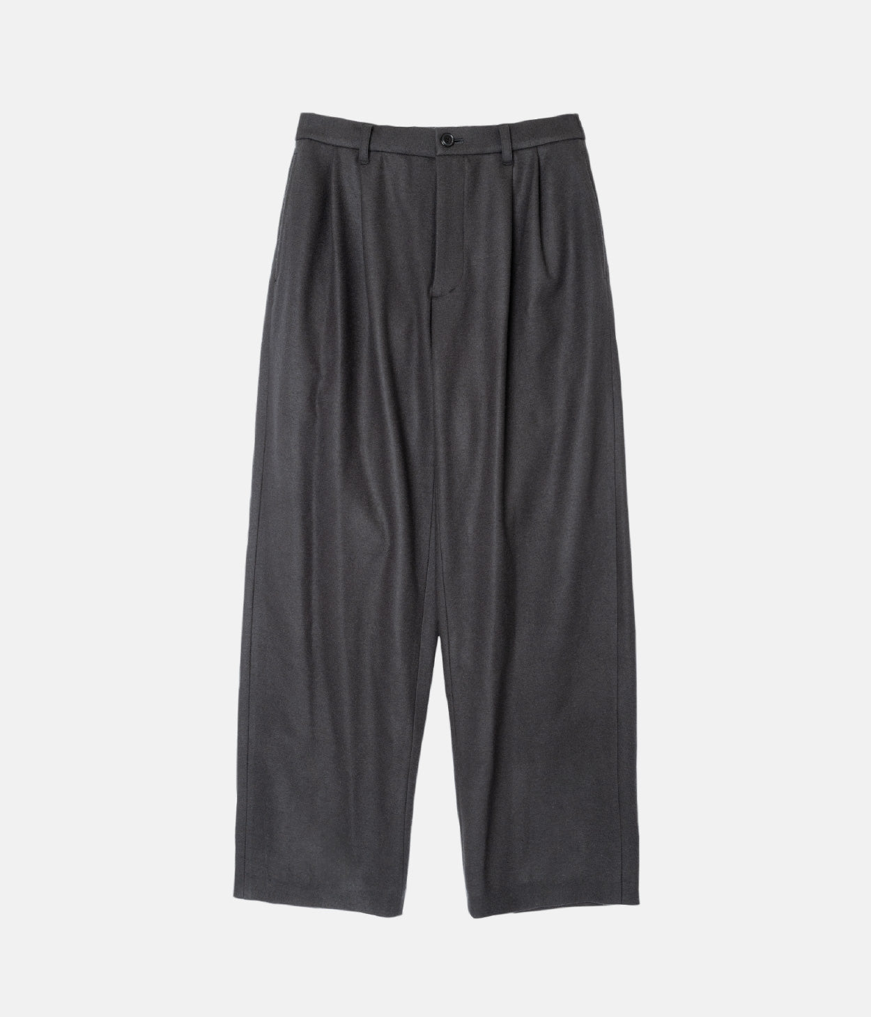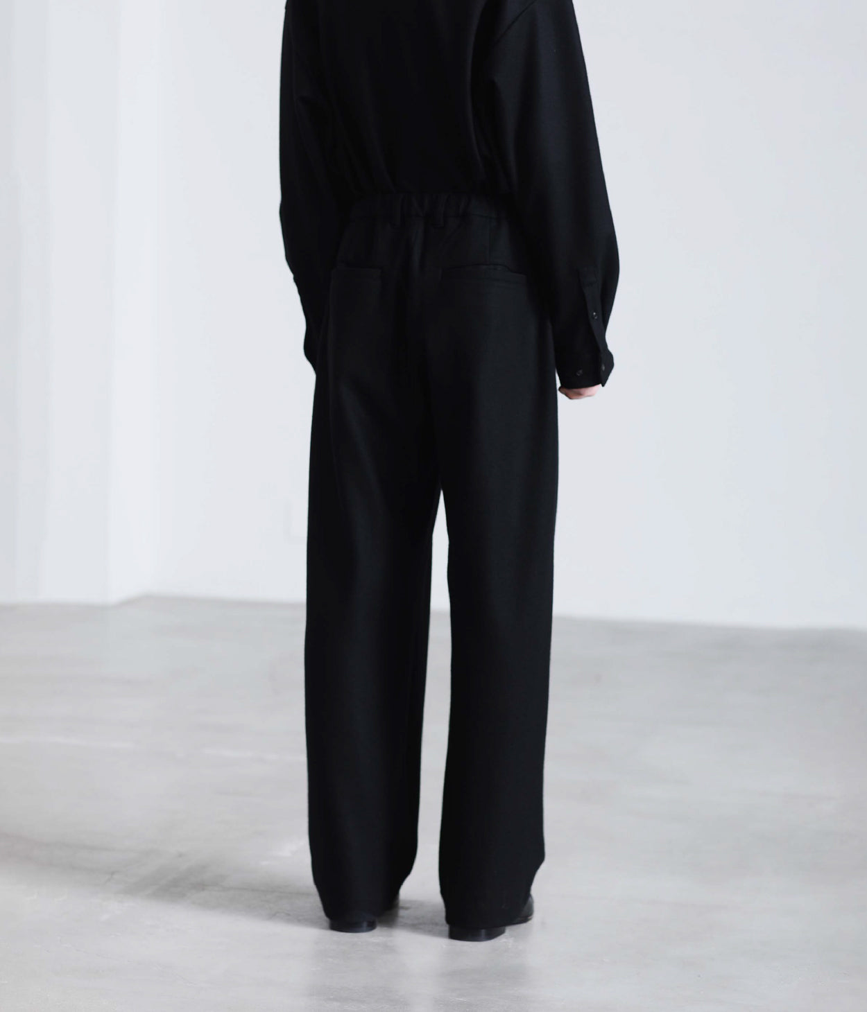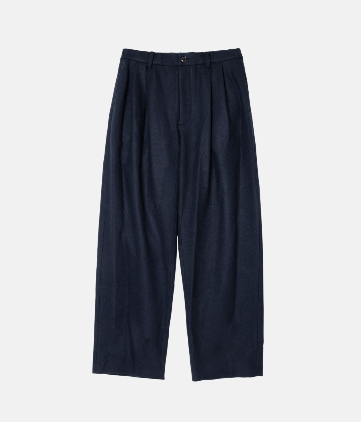 ヒップ~腿周りのボリュームを出しつつ裾にかけて緩くテーパードにすることで、男性、女性どちらが履いても野暮ったく見えずニュアンス感のあるシルエットに仕上げました。