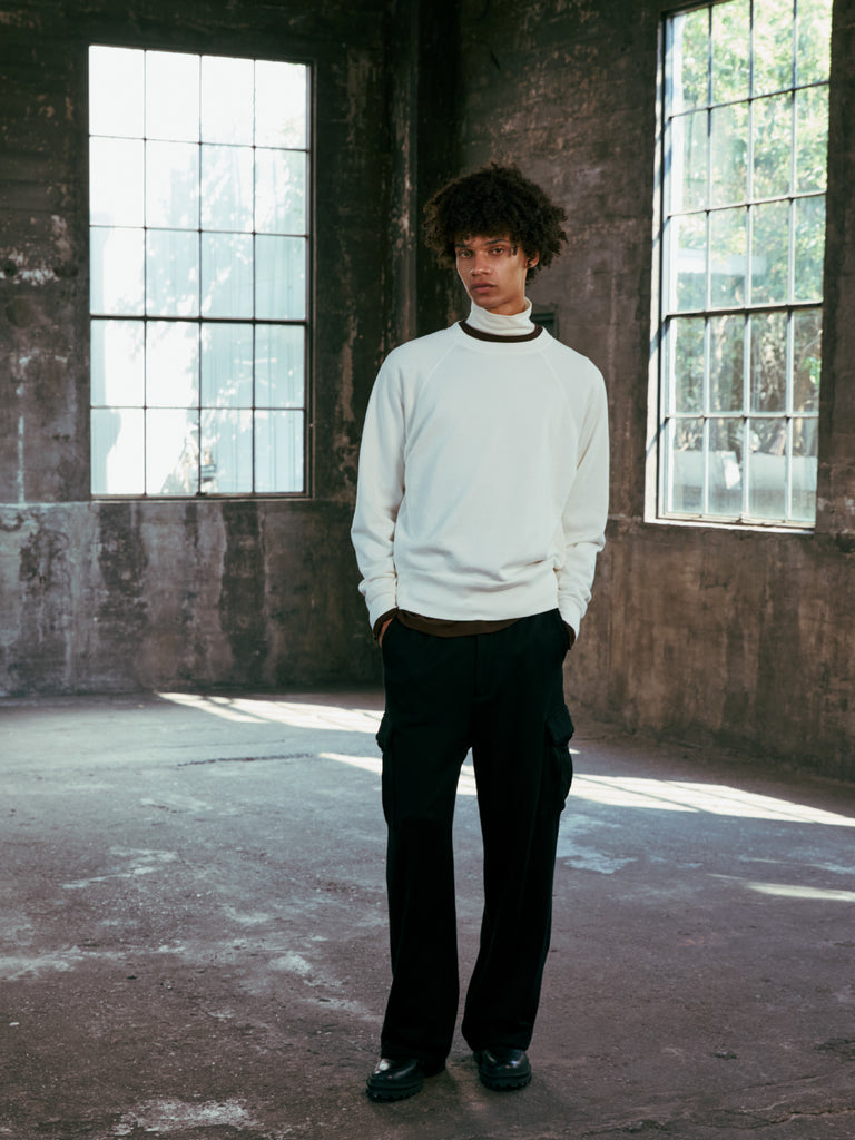 トレンドアイテムのカーゴパンツをLIFiLLらしく「COTTONY® URAKE」素材で上品にアレンジしました。水牛ボタンをあしらい、リュクスなムードと特別感が漂います。脇を直線的に仕上げクリーンな表情をプラス。サイドポケットにはタックを入れ立体感を添えています。裾部分の紐でシルエットの調節が可能です。